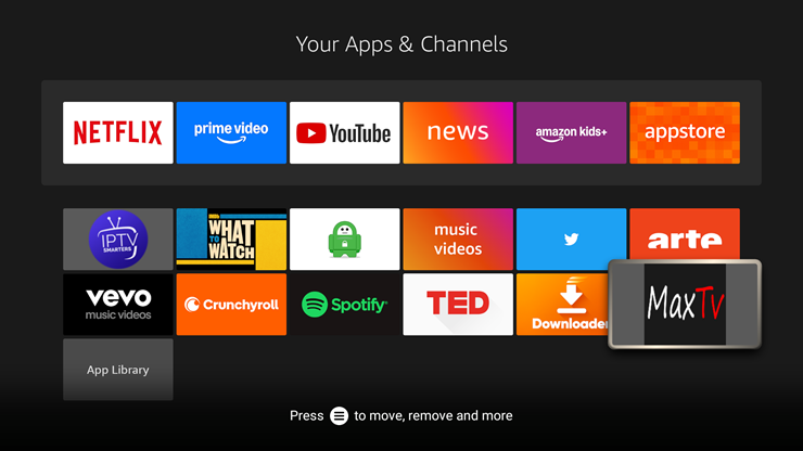 9. Installation is now complete. You can find you MaxTv41 app in your application list. To find click the home button on your firestick remote.