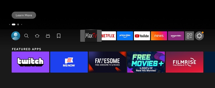 11. Now press the Home button and you should see the MaxTv app on the top line on your home screen.